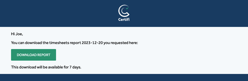 - From here, simply click the Download Report button within the email, and your export file will begin to download.