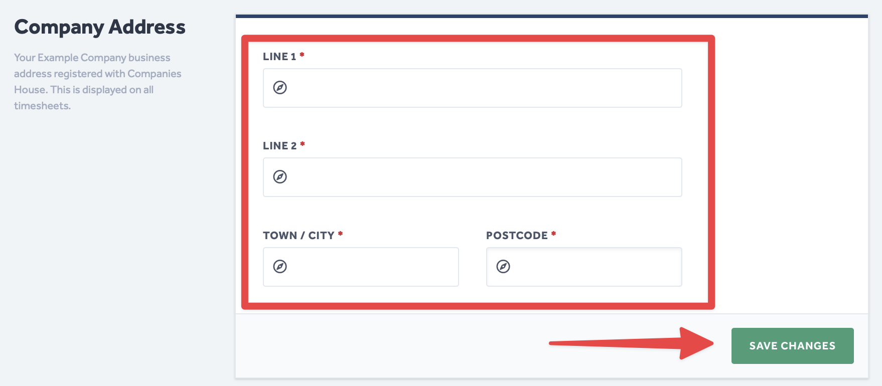 - The Company Address section, below Company Information, is where you can update your Company Address.